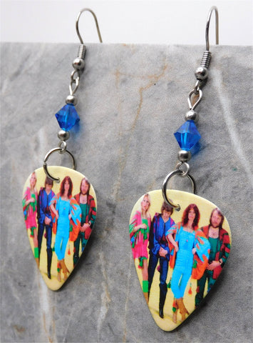 These earrings are made with ABBA guitar picks. Between the guitar pick and the earwire I used a capri blue 6mm genuine Swarovski crystal bicone on each earring.