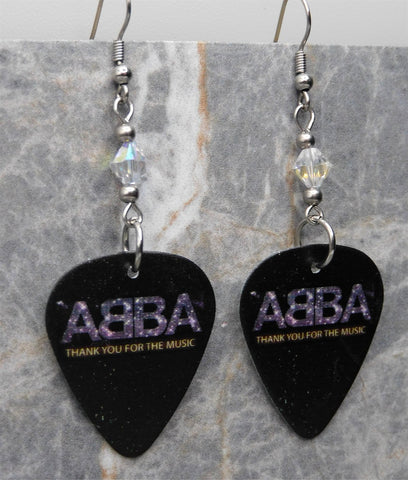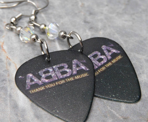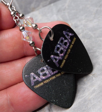 ABBA Thank You For The Music Guitar Pick Earrings with Clear ABx2 Swarovski Crystals