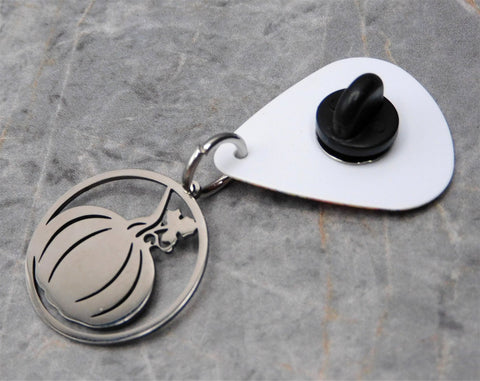 Autumnal Harvest Guitar Pick Pin or Tie Tack with a Stainless Steel Pumpkin Charm