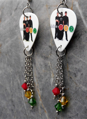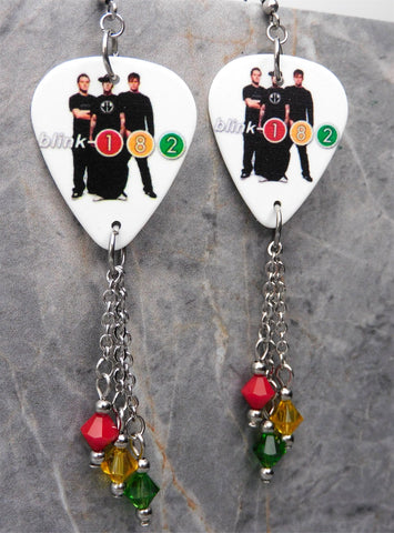 Blink 182 Group Picture Guitar Pick Earrings with Swarovski Crystal Dangles