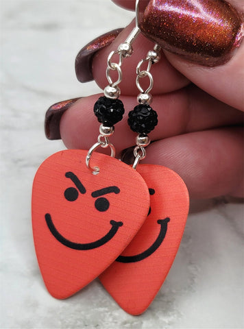 These earrings are made with Bon Jovi Have a Nice Day guitar picks. They are real guitar picks. Between the guitar pick and the earwire I used a 6mm black pave bead on each earring.