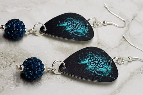 Breaking Benjamin Guitar Pick Earrings with Teal Pave Bead Dangles