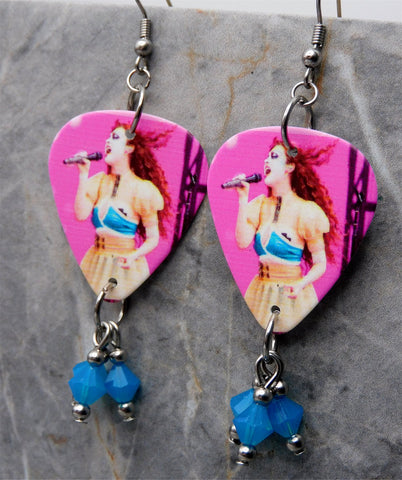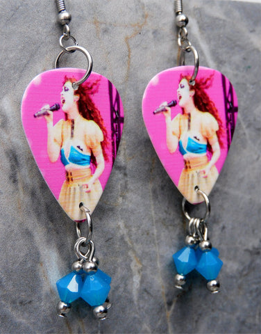 Chappell Roan Guitar Pick Earrings with Capri Blue Opal Swarovski Crystal Dangles