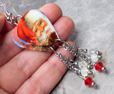 Santa Claus Magic Guitar Pick Earrings with Swarovski Crystal Dangles