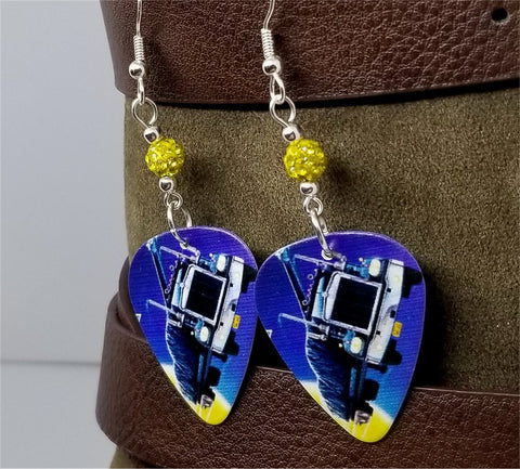Def Leppard On Through The Night Guitar Pick Earrings with Yellow Pave Beads