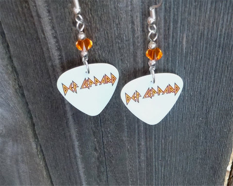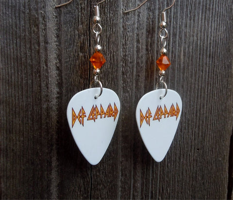 Def Leppard Logo Guitar Pick Earrings with Fire Opal Swarovski Crystals