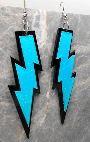 Black and Aqua Blue Lightning Bolt Acrylic Earrings