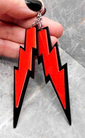Please don't go running due to the acrylic word! Acrylic has come a long way. These are made with good quality acrylic, which make these earrings lightweight and fun to move around. They are two different pieces of acrylic - a red glitter piece is on top of a shiny black piece. Since it is two pieces, the earrings are not flat. And that dimension helps these look even better!