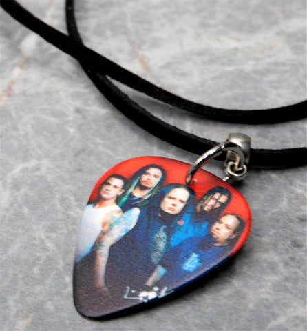 Korn Group Picture Guitar Pick Necklace with Black Suede Cord