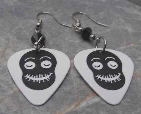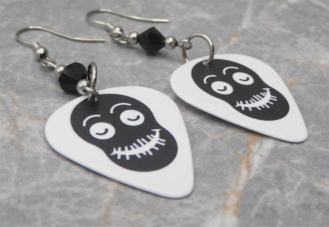 They are made with what I would call a smiling ghoul guitar picks! Between the guitar pick and the earwire I used a 6mm black genuine Swarovski crystal bicone on each earring.