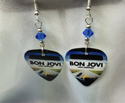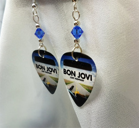 Bon Jovi Lost Highway Guitar Pick Earrings with Blue Swarovski Crystals