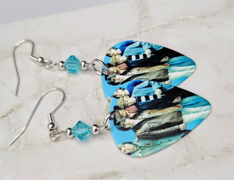 The Beach Boys Group Photo Guitar Pick Earrings with Aqua Blue Swarovski Crystals
