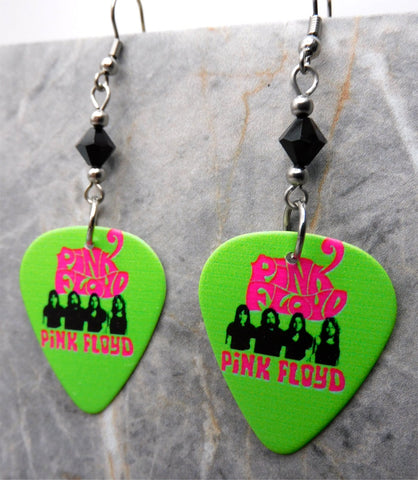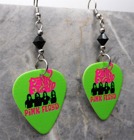 Very Brightly Colored Pink Floyd Guitar Pick Earrings with Black Swarovski Crystals