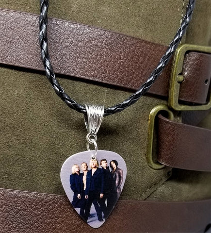 This necklace is made with black braided cord. I used a Def Leppard Phil Collen guitar pick as the pendant. The front of the pick is the image of Def Leppard's Phil Collen, and the back side of the pick is white.