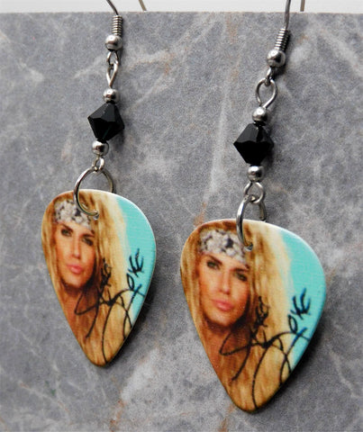 Lexxi Foxx of Steel Panther Guitar Pick Earrings with Black Swarovski Crystals