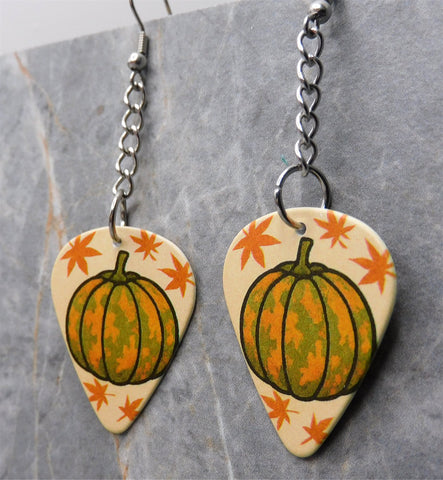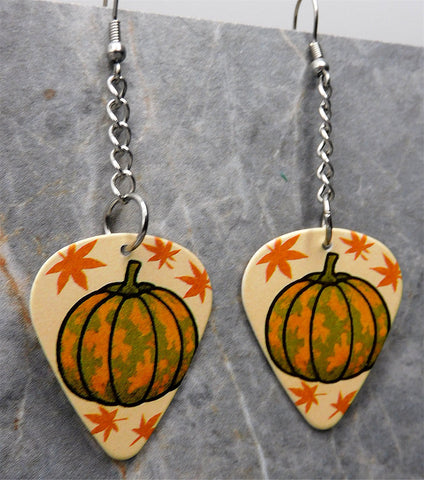 These earrings are made with guitar picks that have a pumpkin that is perfect for any autumn looks. Will it be a pie? Will it be carved? Don't know! I just know that I love the autumn and things like these guitar picks make these earrings bring a smile to my face. The guitar picks are printed on both sides. I used stainless steel chain to dangle the guitar pick from the earwire.