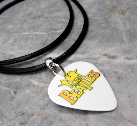 Orange and Yellow The Beatles Guitar Pick Necklace with Black Rolled Cord