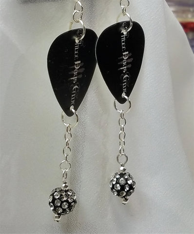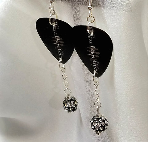 Three Days Grace Guitar Pick Earrings with Black and White Pave Bead Dangles