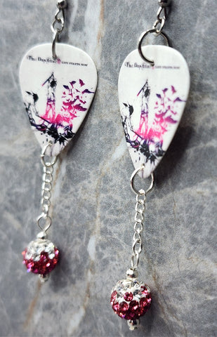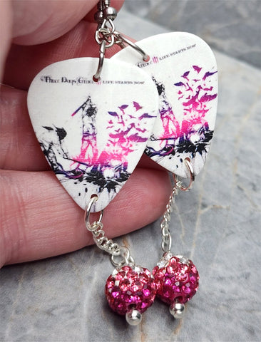 Three Days Grace Life Starts Now Guitar Pick Earrings with Pink Ombre Pave Bead Dangles