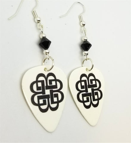 Breaking Benjamin Logo White Guitar Pick Earrings with Black Swarovski Crystals