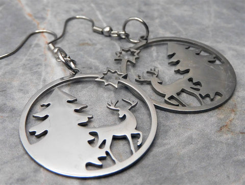 These Christmas earrings are made with a stainless steel circle charm. It has a beautiful wintery scene of a reindeer, a tree and a star - or at least that is how I interpret it!