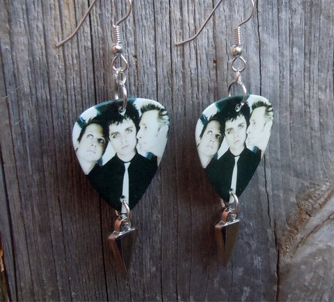 Green Day Group Picture Guitar Pick Earrings with Spike Charm Dangles