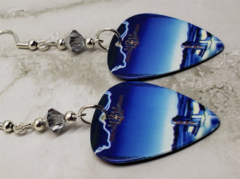 Journey Raised on Radio Guitar Pick Earrings with Metallic Silver Swarovski Crystals