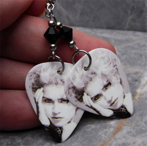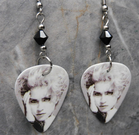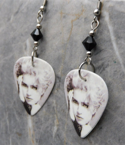 Madonna Debut Album Cover Guitar Pick Earrings with Black Swarovski Crystals