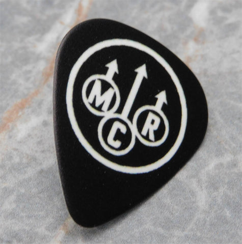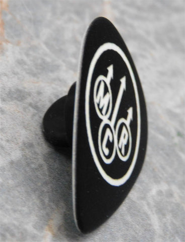 This lapel pin or tie tack is made with a My Chemical Romance guitar pick. It is a real guitar pick.