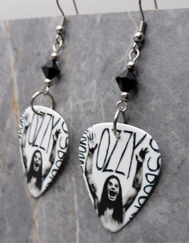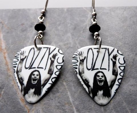Ozzy Osbourne Guitar Pick Earrings with Black Swarovski Crystals
