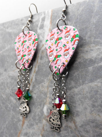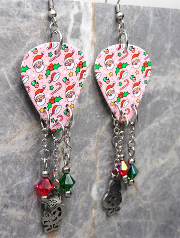 Santa, Candy Canes and Holly Guitar Pick with Stainless Steel Santa Charms and Red and Green Swarovski Crystals Dangles