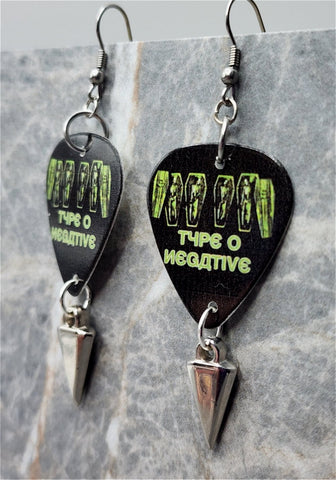 Type O Negative Coffin Guitar Pick Earrings with Spike Charm Dangles